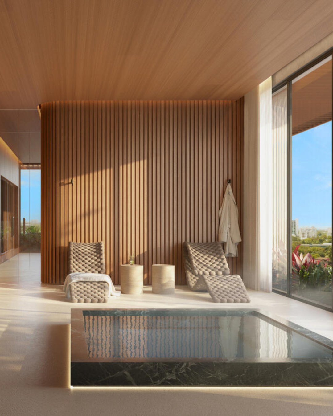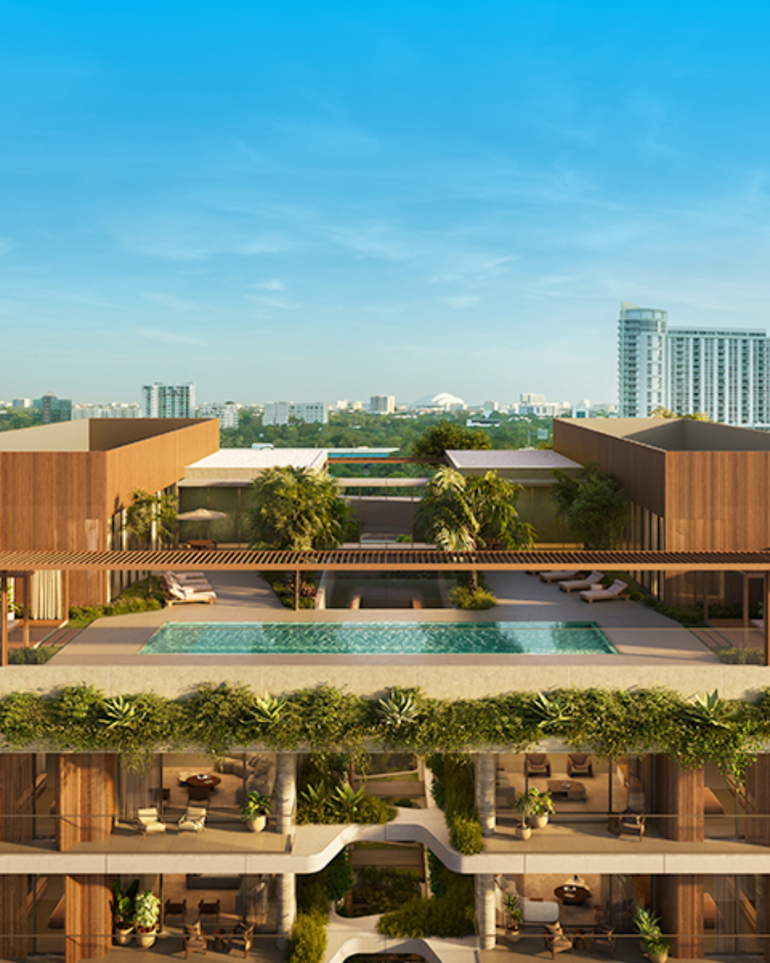 - Duplex penthouses with rooftop pools and outdoor living areas